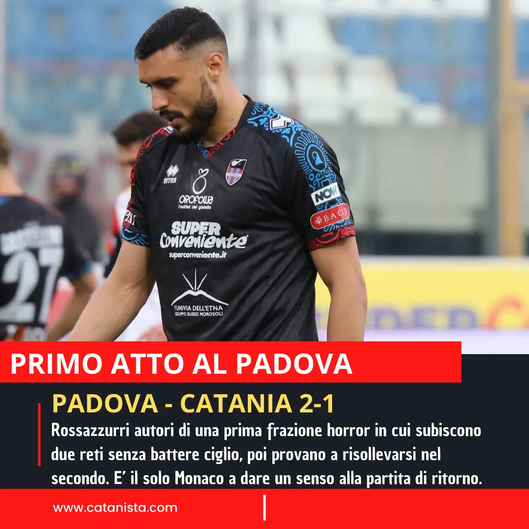 Catania sconfitto, non del tutto battuto in vista del ritorno, ma di sicuro ben lontano dal sembrare il prossimo vincitore della coppa Italia Serie C. Prima Palombi, poi Crisetig suonano due sveglie ad una squadra in balia di un Padova nel primo tempo inarginabile per i rossazzurri. Nel secondo tempo padroni di casa abbassano i ritmi, forse troppo, e il Catania senza produrre nulla di ché sfrutta un angolo