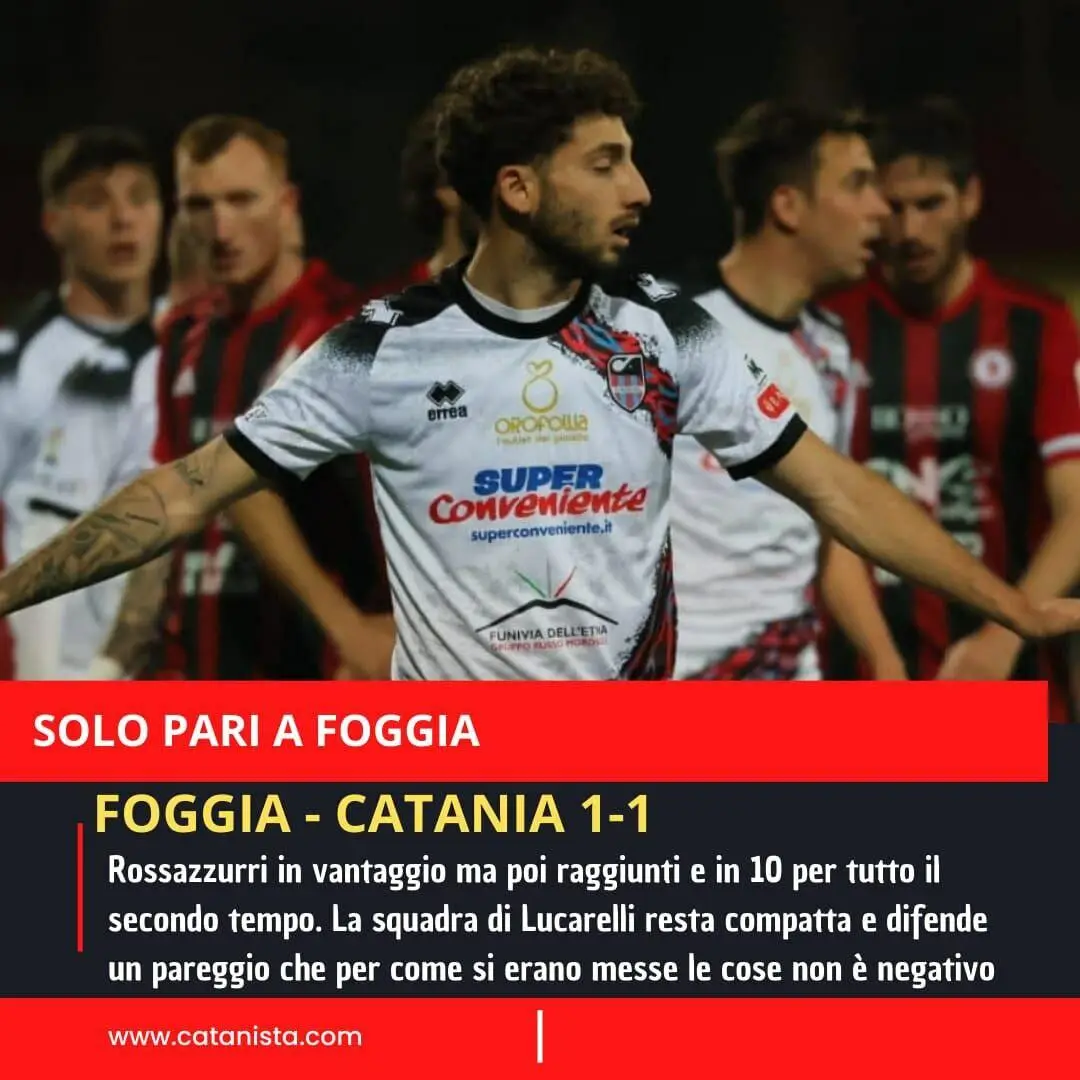 Foggia-Catania 1-1, cronaca e tabellino: i rossazzurri prendono un pareggio dopo un secondo tempo tutto in inferiorità numerica
