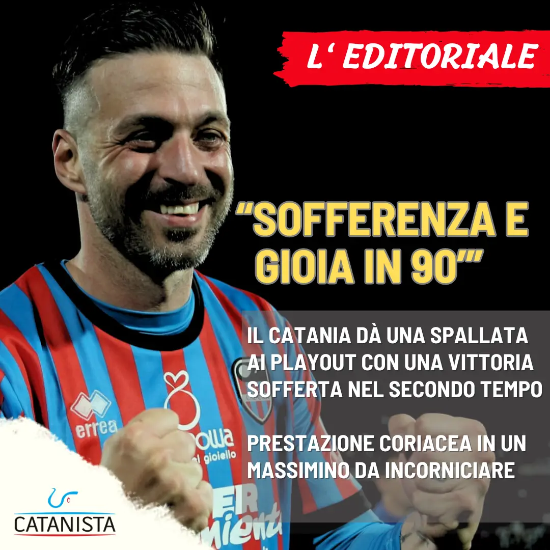 Il Catania torna al successo in campionato nel momento più delicato possibile, nella partita più sentita e contro un avversario di tutto rispetto. Insomma il copione di tutta la stagione è stato rispettato e nonostante il sipario non sia ancora calato, la spallata ai playout è abbastanza netta. Un Catania bello che stavolta ha corso quel pelino in più e ha combattuto quel tanto che è bastato per superare i limiti che inevitabilmente ci sono e che non possono essere cancellati in sette giorni. Contro il Messina il Catania è apparso compatto come in quelle poche serate belle, un po' la stessa gara vista contro il Rimini nella semifinale di ritorno, sapendo soffrire, sfruttando gli episodi e, alla fine, probabilmente facendo il massimo possibile per il contesto vissuto.
