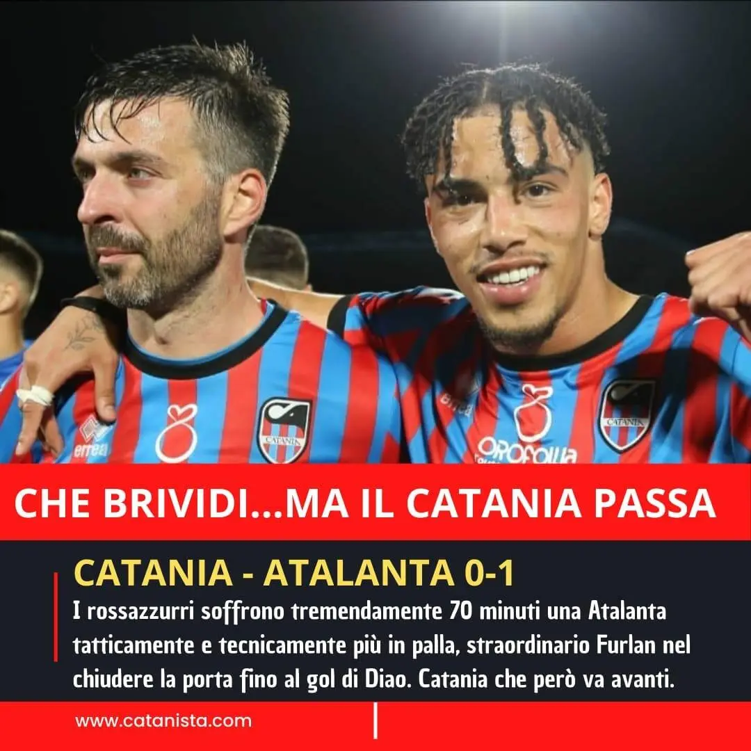 Il Catania passa il turno nonostante la sconfitta finale sancita dalla rete sugli sviluppi di calcio d'angolo da parte di Diao. Una gara molto complicata che ha visto Jacopo Furlan assoluto protagonista con 5 parate di livello assoluto, complice però anche la poca prolificità degli ospiti. Nel primo tempo i rossazzurri avevano sfiorato il gol con Cicerelli, poi sostituito da Tello nella ripresa. Nel finale era Castellini a rischiare di pareggiare con il palo colpito in ripartenza.