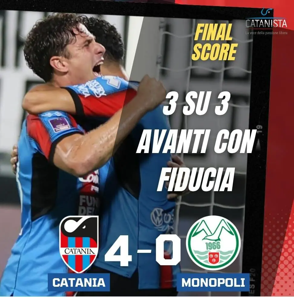 Catania-Monopoli 4-0, cronaca e tabellino: 3 su 3, avanti con fiducia
