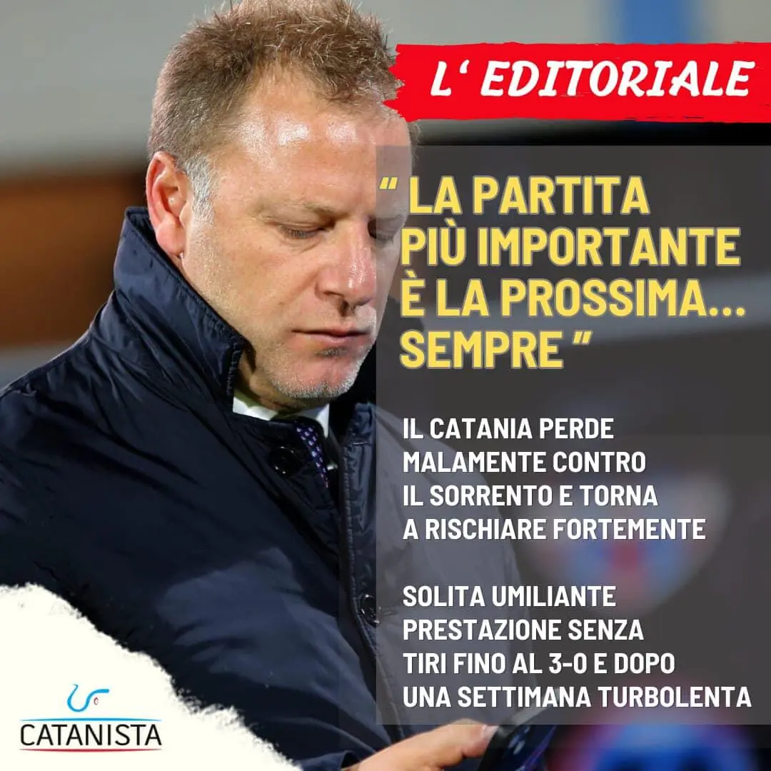 Il Catania è riuscito in un'impresa non facile: essere sotto di tre reti in una gara in cui neanche chi era sopra di tre reti aveva voglia di vincere. Sorrento-Catania per quarantacinque minuti è stato l'emblema del calcio di fine stagione, con una squadra che giochicchiava senza pungere ed un'altra senza anima che già al ventesimo aspettava la fine del match. L'unico problema è che fra le due compagini doveva essere il Catania a volere di più la vittoria, doveva essere il Catania a cercare di sfruttare gli episodi, è il Catania che deve fare qualcosa di positivo per salvarsi. Se nelle ultime trasferte cercando solo di difenderti hai “conquistato” umiliazioni, forse era arrivato il momento di agire diversamente, ed invece no. Ma del resto nella sua prevedibile imprevedibilità la formazione rossazzurra ha rispettato il copione: dopo una partita importante, ecco pronta la sconfitta pesante.