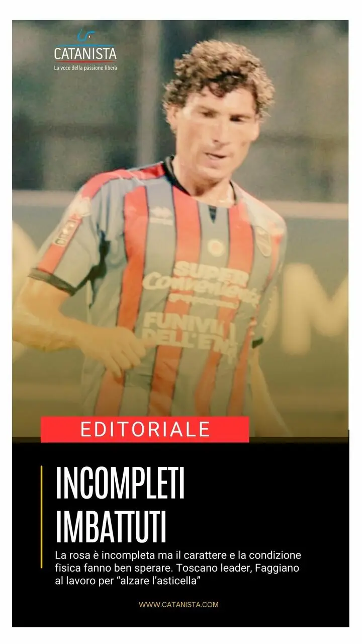 Un pari avaro di emozioni e stracolmo di clima estivo spesso viene considerato negativamente da chi ha ambizioni importanti, ma il Catania non deve commettere questo errore. Lo zero a zero maturato al Viviani non è sicuramente uno spot per il calcio, un incentivo all'abbonarsi o un'arma per catturare neofiti del football, ma è quello che tutti si immaginavano visto come il Catania è arrivato alla prima giornata. Ad oggi, per la rosa a disposizione, gli etnei non possono vantare ambizioni pari o superiori rispetto ad altre compagini, ma cosa succederà da qui al primo settembre nessuno può saperlo. Nemmeno Faggiano, Toscano e Grella. Sicuramente il Catania doveva presentarsi già pronto prima del 24 agosto, ma vista la realtà dei fatti, pareggiare in questo modo con il Sorrento per certi versi può anche andar bene.