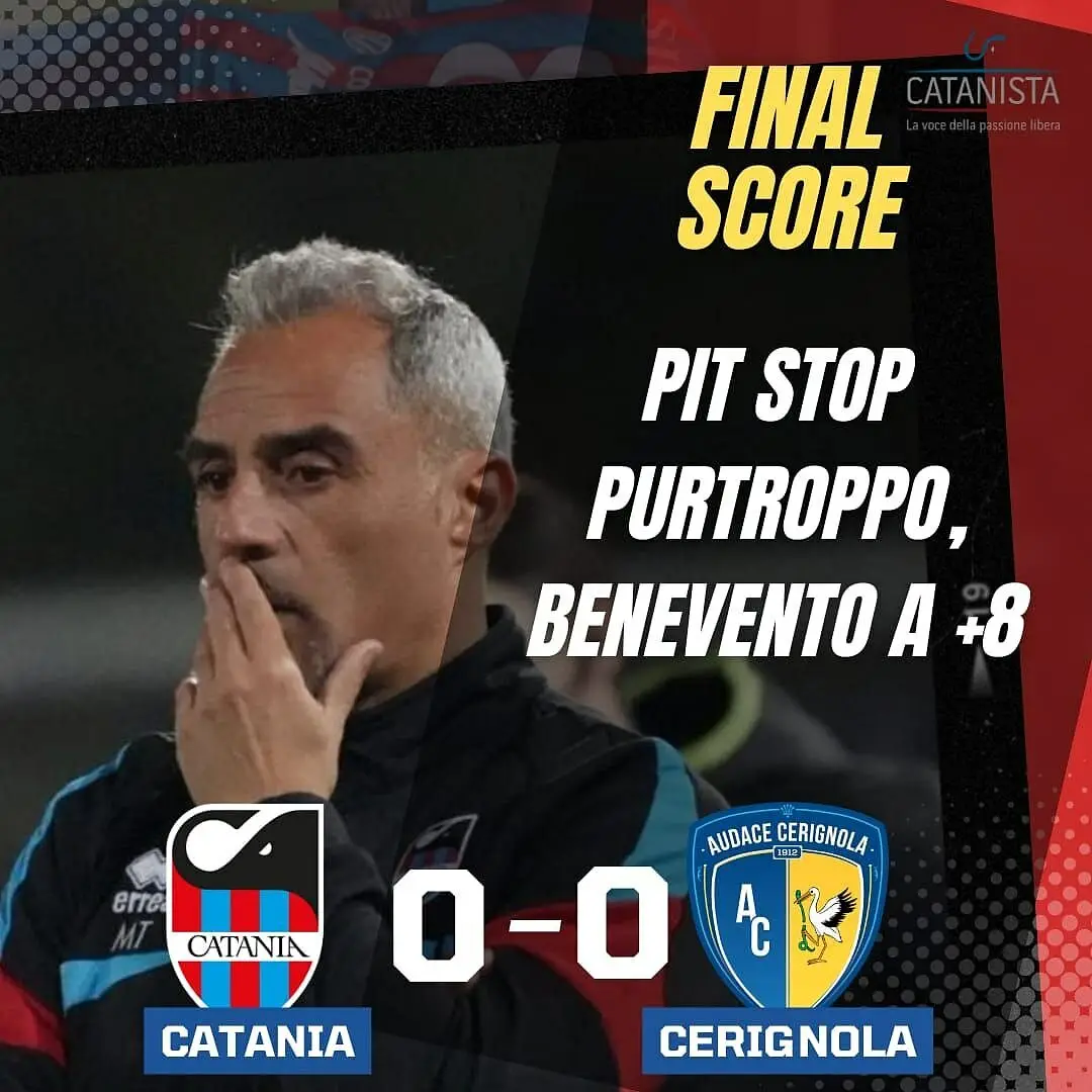 Catania-Audace Cerignola 0-0, cronaca e tabellino: pit stop, Benevento purtroppo a +8