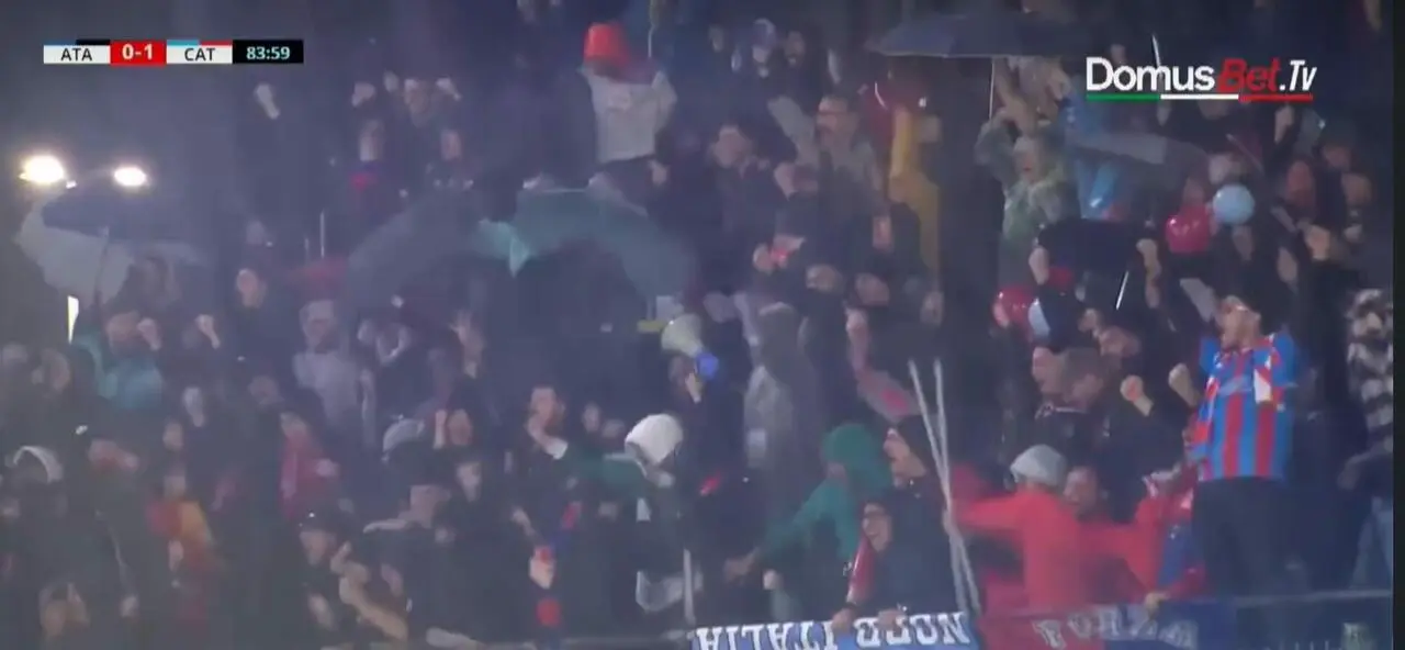 C'è chi lancia l'ombrello in aria, chi si prende in faccia tutta l'acqua agitando le mani al cielo, c'è anche chi abbraccia il vicino di posto che neanche conosce: ma sa di essere accomunato a lui, magari è il trovarsi lontano dalla propria terra. Sicuramente è il sentimento per il rosso e l'azzurro. Quasi 300 etnei ieri si sono presentati, in uno stadio in miniatura fornito solo di una minuscola tribuna a 30 minuti da Bergamo, potremmo dire a "sorpresa": solo che la festa alla fine gliel'ha regalata il Catania con una prestazione che non fa acqua, ma fuoco.