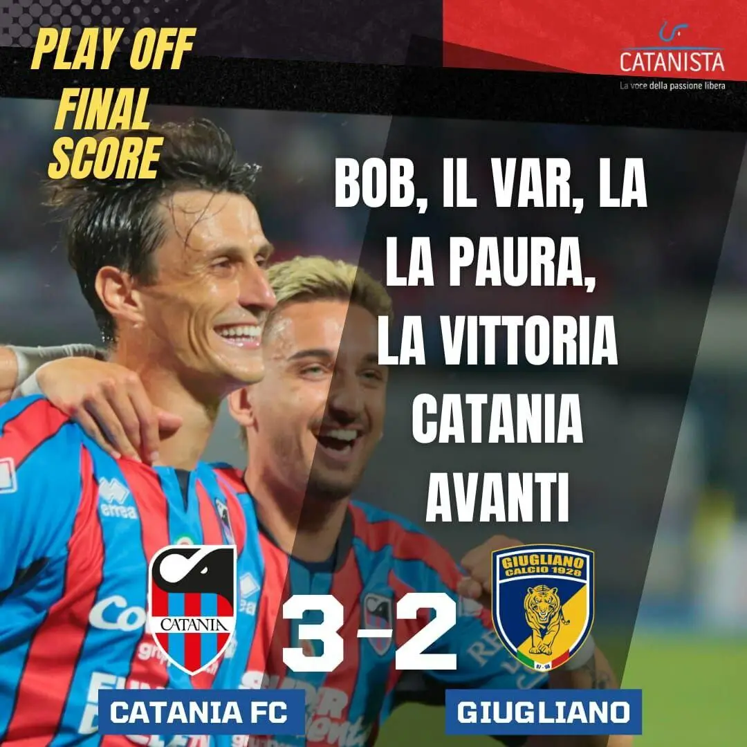 Catania-Giugliano 3-2, cronaca e tabellino: Bob, il VAR, la paura, la vittoria. Catania avanti