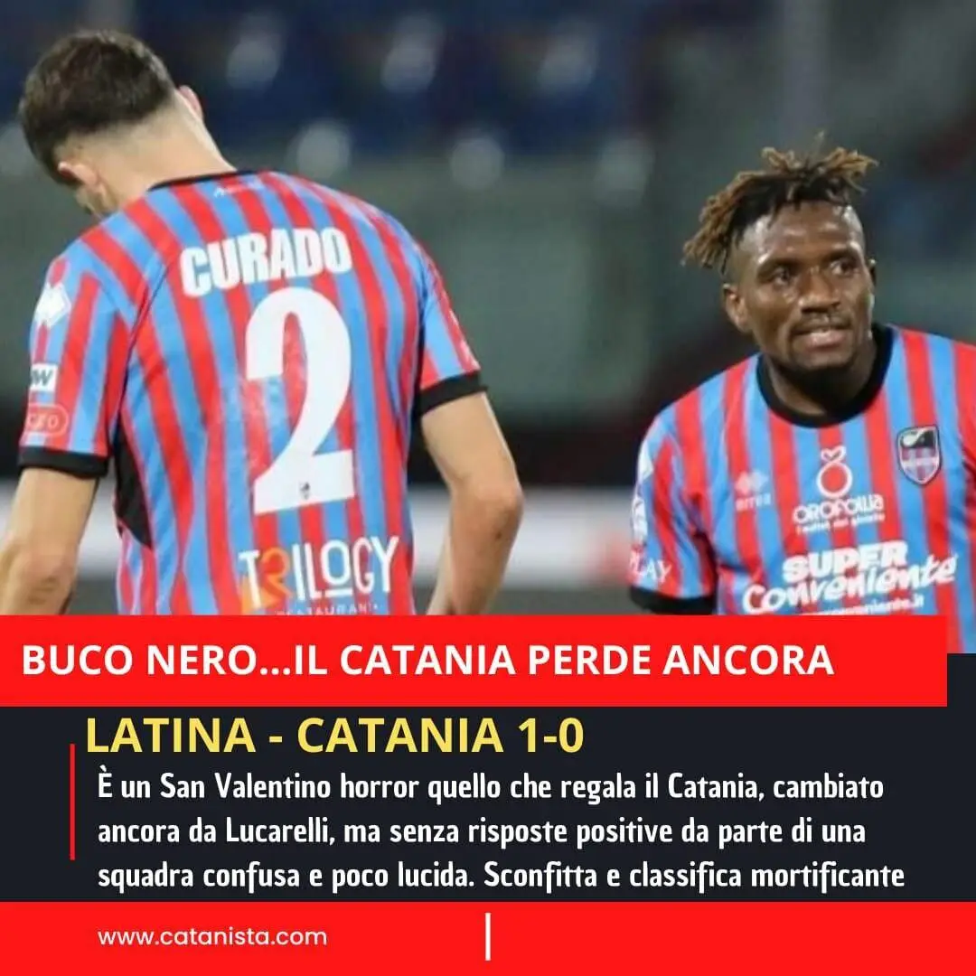 Catania che scambia San Valentino per halloween, e gioca una brutta partita nonostante i cambi a sorpresa di Lucarelli: 4-4-2 con Marsura lanciato a sorpresa dall'inizio. Il risultato però è quello delle ultime trasferte, noioso nel primo tempo, punito nel secondo dall'unica palla gol costruita dal Latina, costruita peraltro dall'ennesima palla sanguinosa persa a centrocampo. Ma la reazione è di pancia, il Catania sembra confuso, non gira nessun pallone verso la rete avversaria e perde un'altra brutta partita che non muove una classifica sempre più mortificante.