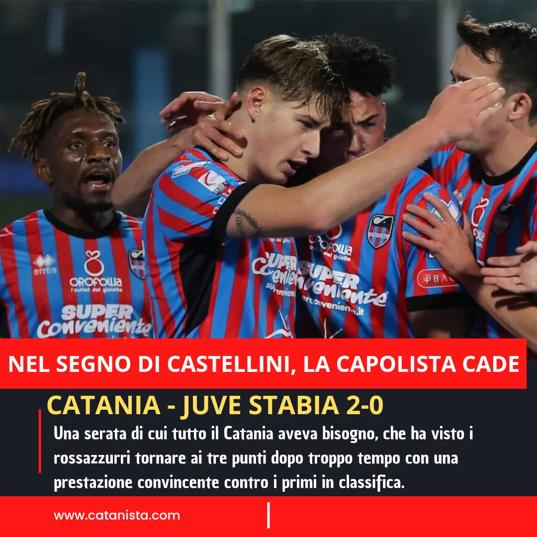 Catania-Juve Stabia 2-0, cronaca e tabellino: nel segno di Castellini, la capolista cade