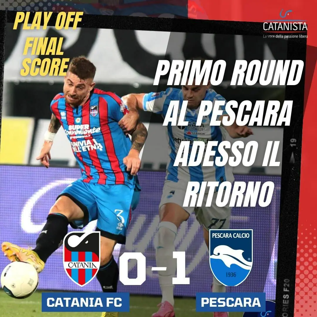Una partita tirata che termina 0-1 al termine di 90' minuti sostanzialmente divisi per parte: Catania più deciso ed intenso nel primo tempo ma senza trovare il guizzo da gol, l'unico è per Jiménez ma non trova la porta. Secondo tempo di marca abruzzese anche se l'occasione più ghiotta è per Di Tacchio. Tutto fino all'85' quando Merola fa ad onor del vero una gran rete. I rossazzurri non reagiscono, i cambi stavolta danno poco. Ma ci sono ancora 90' da giocare.