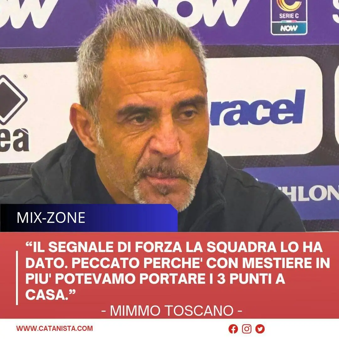 Ecco le dichiarazioni del mister Domenico Toscano subito dopo la prova di Avellino del suo Catania, con il risultato finale di 2-2: